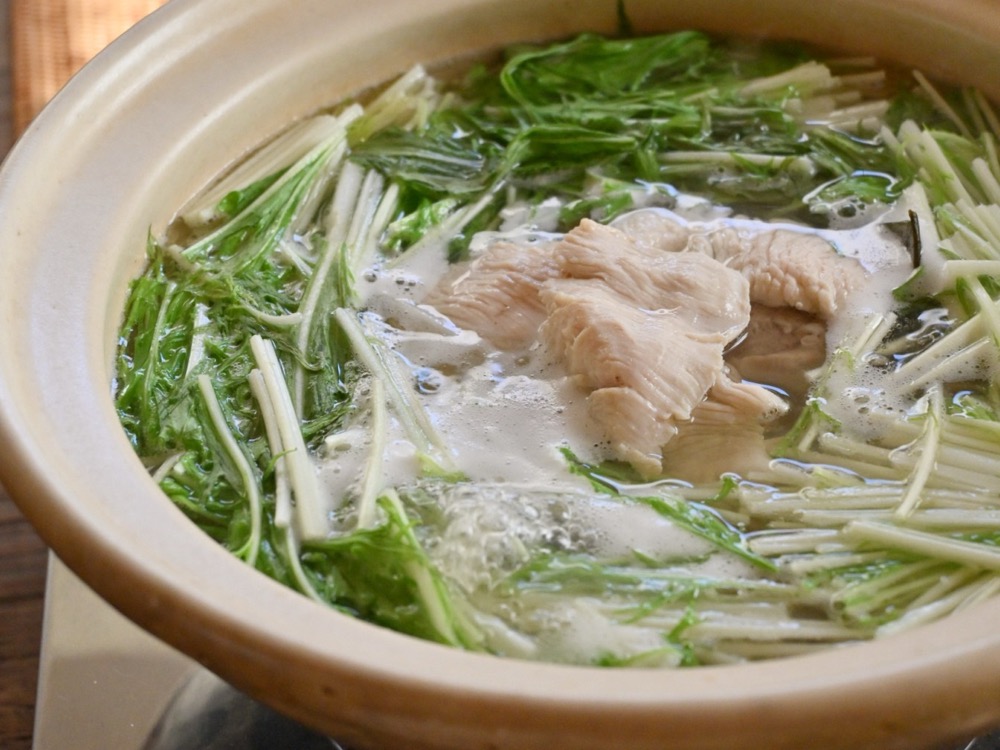 水菜と鶏むね肉のはりはり鍋 水菜のシャキシャキとしっとり鶏肉、毎日食べても飽きないお鍋です。昆布のグルタミン酸、鶏肉のイノシン酸、日本酒のコハク酸で旨味の相乗効果が美味しさの理由。パサつ… 2026/2/18 |ノンオイルレシピ特集